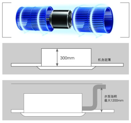 配置先進的高揚程冷凝水泵,可將室內機制冷時產生的冷凝水提升最大可達